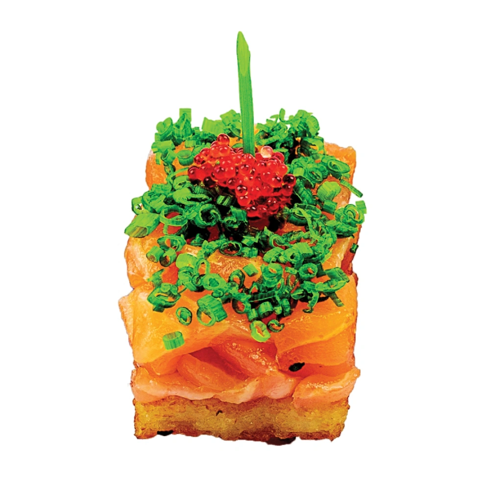 Saumon marinée,Goma wakame, tobiko sauce Guacamole