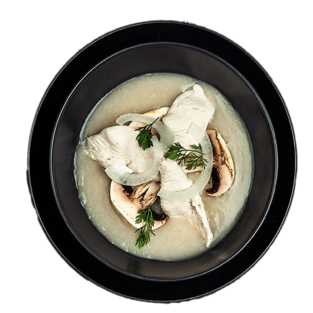 Lait de coco poulet Poulet, lait de coco, champignons frais, oignon, coriandre