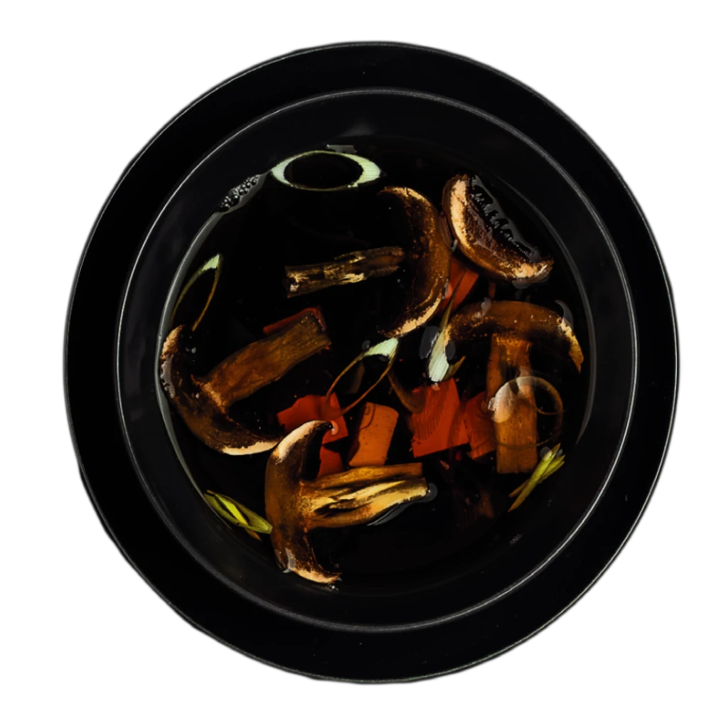 Saumon, Tofu, champignons shiitake, wakame, poireau 39Dhs