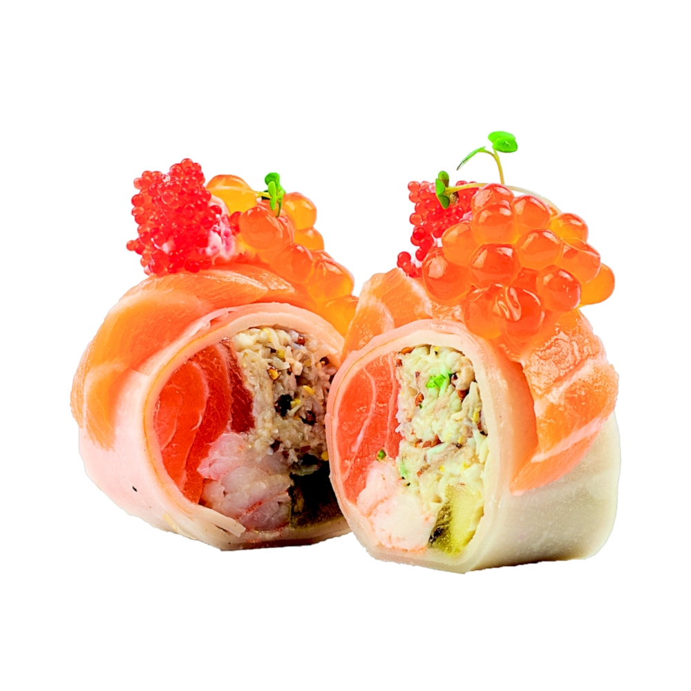 Saumon, Crevette pochée, Saumon fume kiwi, ikura, Crème cheese, Tobiko