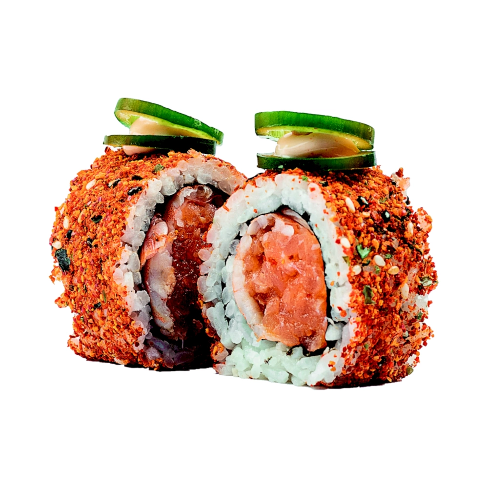 Saumon fumé, saumon, crabe epicé jalapenos, tobiko, sishimi