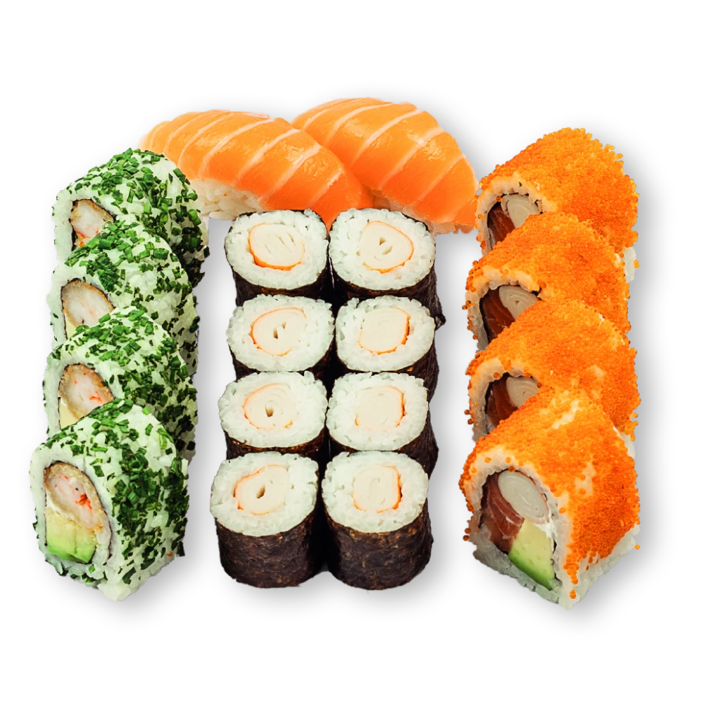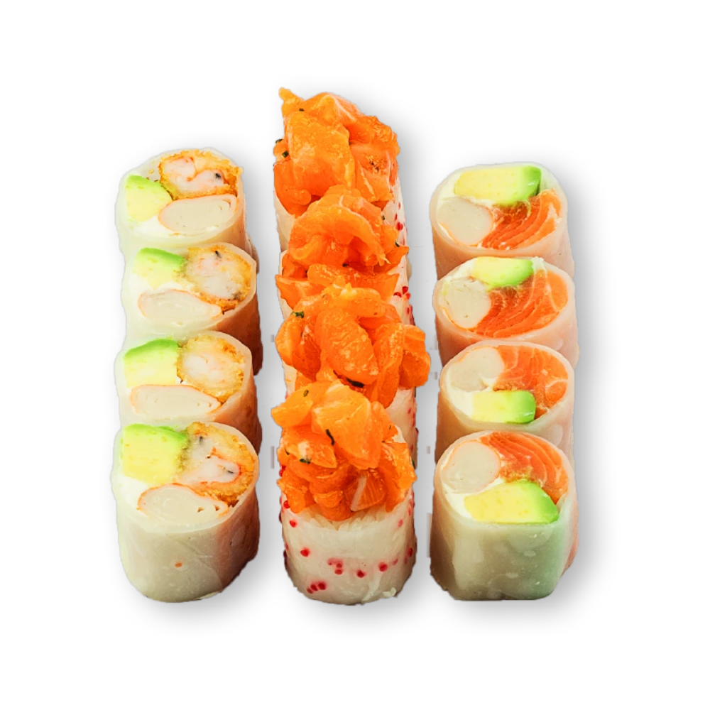 8 maki surimi, 4 california crème cheese, 4 california eby fry, 2 nigiri saumon